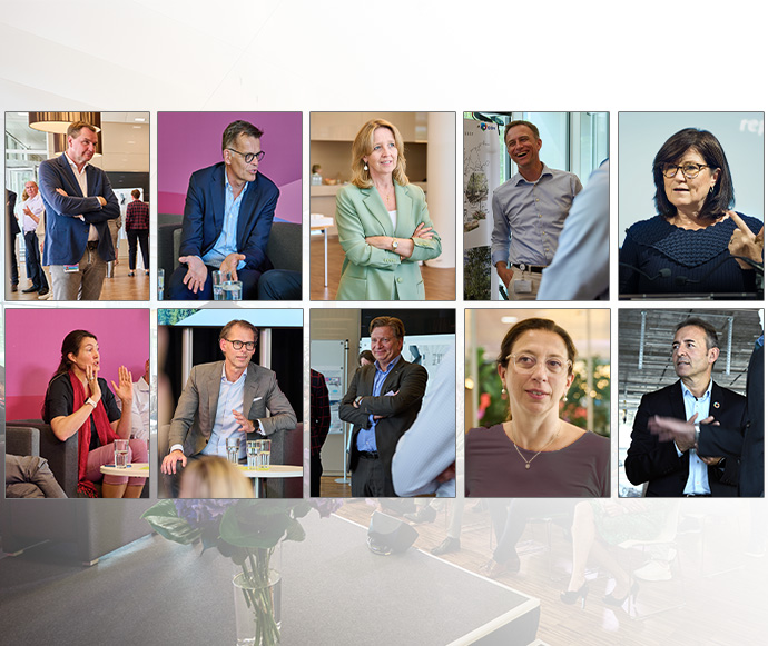 DSM Executive Committee (clockwise from top left): Philip Eykerman, Andre Bos, Helen Mets (left DSM in December 2022), Ivo Lansbergen, Patricia Malarkey, Luca Rosetto, Cristina Monteiro, Patrick Niels, Dimitri de Vreeze and Geraldine Matchett.